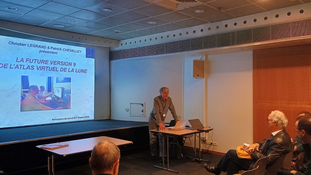 Christian Legrand a présenté une conférence sur la future version 9 de l' "Atlas Virtuel de la Lune" qu'il co-développe avec Patrick Chevalley. De nombreuses questions sur la génèse, le fonctionnement et le futur du logiciel ont été posées après l'exposé.