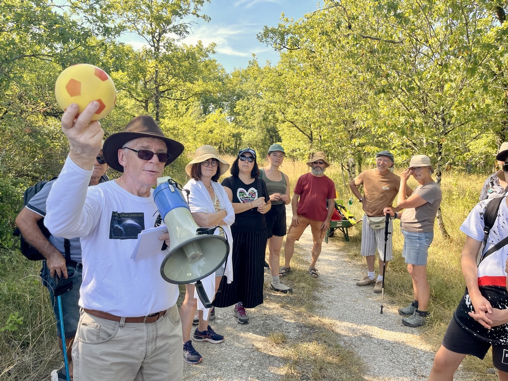 Une "Balade entre les planètes" de 6 km a permis à 45 personnes de découvrir notre Système Solaire et ses planètes à l'échelle de 1 mètre pour 1 million de km ! A cette échelle, chaque pas représentait 700 000 km, 2 fois la distance Terre-Lune environ ! A chaque orbite planétaire, lors d'une pause, Christian Legrand a présenté et commenté une maquette également à l'échelle de chaque planète. Entre chaque planète, le parcours était consacré à la réponse aux questions posées par les participants. Un bon moyen d'associer science et nature fortement apprécié par tous les explorateurs.