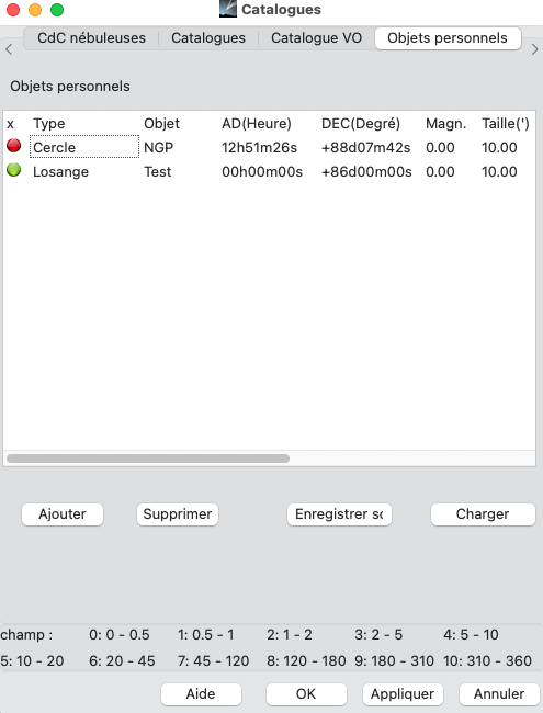 Pouvez vous enregistrer la configuration du programme juste après l'ajout de cet objet et m'envoyer le fichier de configuration skychart.ini qui se trouve dans le dossier ~/Library/Application Support/skychart/