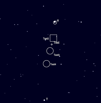 Miracle final ! Cela marche bien, je n'ai pas encore testé toutes les fonctionnalités, mais j'obtiens tous les objets rentrés, sur la même carte, avec leurs carrés. Je laisse CDC décider magnitude et taille car j'ai planté en essayant de les fixer moi-même, mais cela ne me gêne pas de laisser CDC décider.