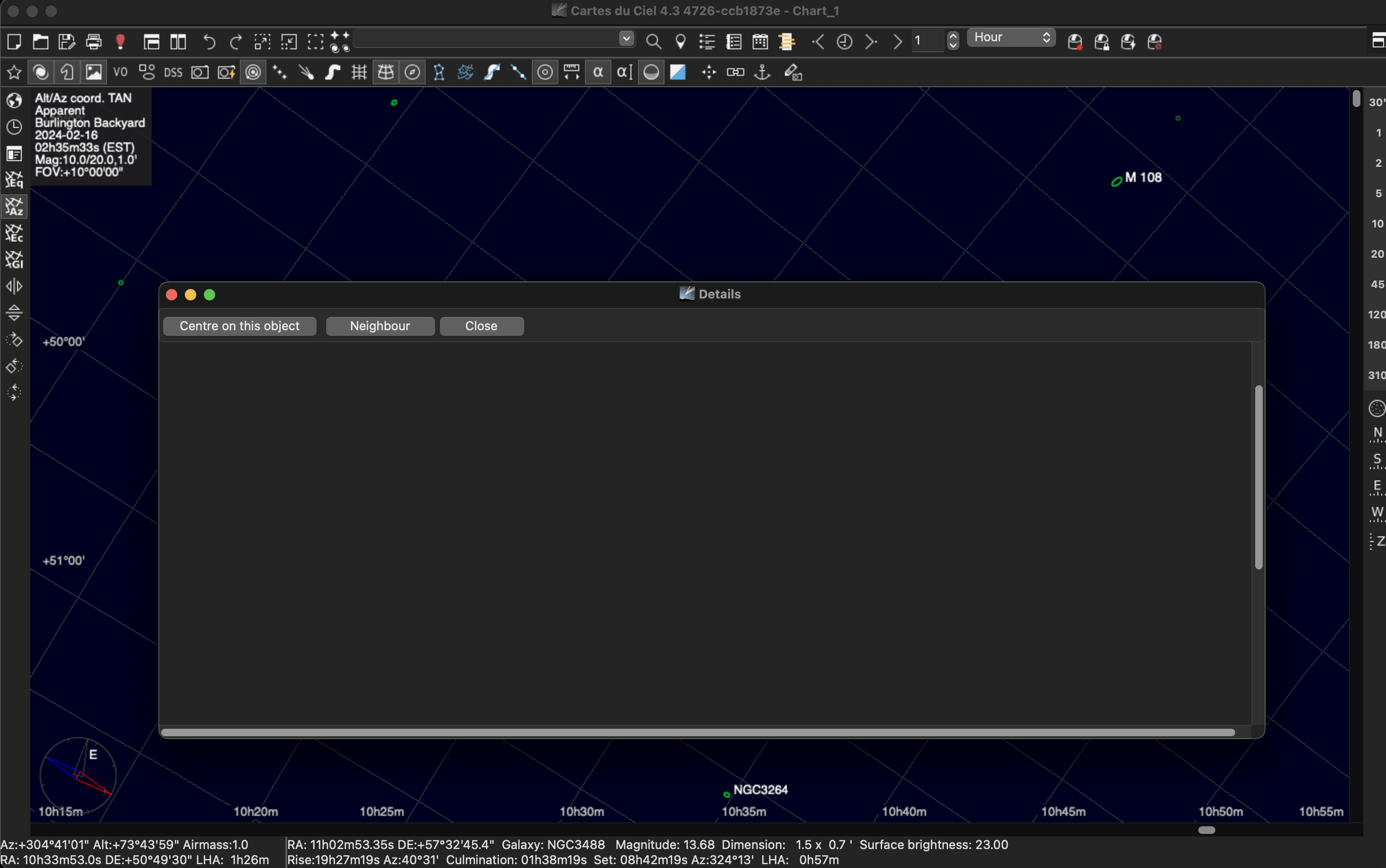 Thank you for the testing and for your patience. It is important for me to not change too much at a time to be sure we stay on the right track. I make a new change to improve that. Can you try with this new version 4.3-4727 and report how this work. https://vega.ap-i.net/tmp/skychart/skychart-4.3-4727-x86_64-macosx.dmg |