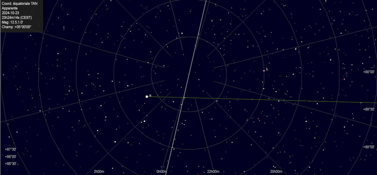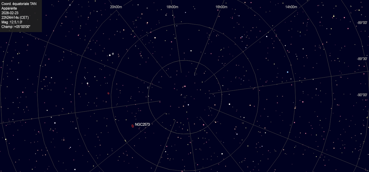 J'ai fais une correction pour ça, maintenant avec les exemples que vous donnez les labels se centrent progressivement pour aboutir au pole. Mais ça ne le fait pas avec un grand champ ou je préfère ignorer ces labels plutôt que de surcharger la carte. J'ai donc ajouté une nouvelle option pour afficher les labels de déclinaison au centre plutôt que sur le bord, c'est dans Paramètres / Affichage / Grilles , "Labels de déclinaison au centre". Ca permet de toujours les avoir dans le cas ou ça ne brouille pas trop la carte. C'est disponible dans le version journalière: https://vega.ap-i.net/pub/skychart/daily_build/ |