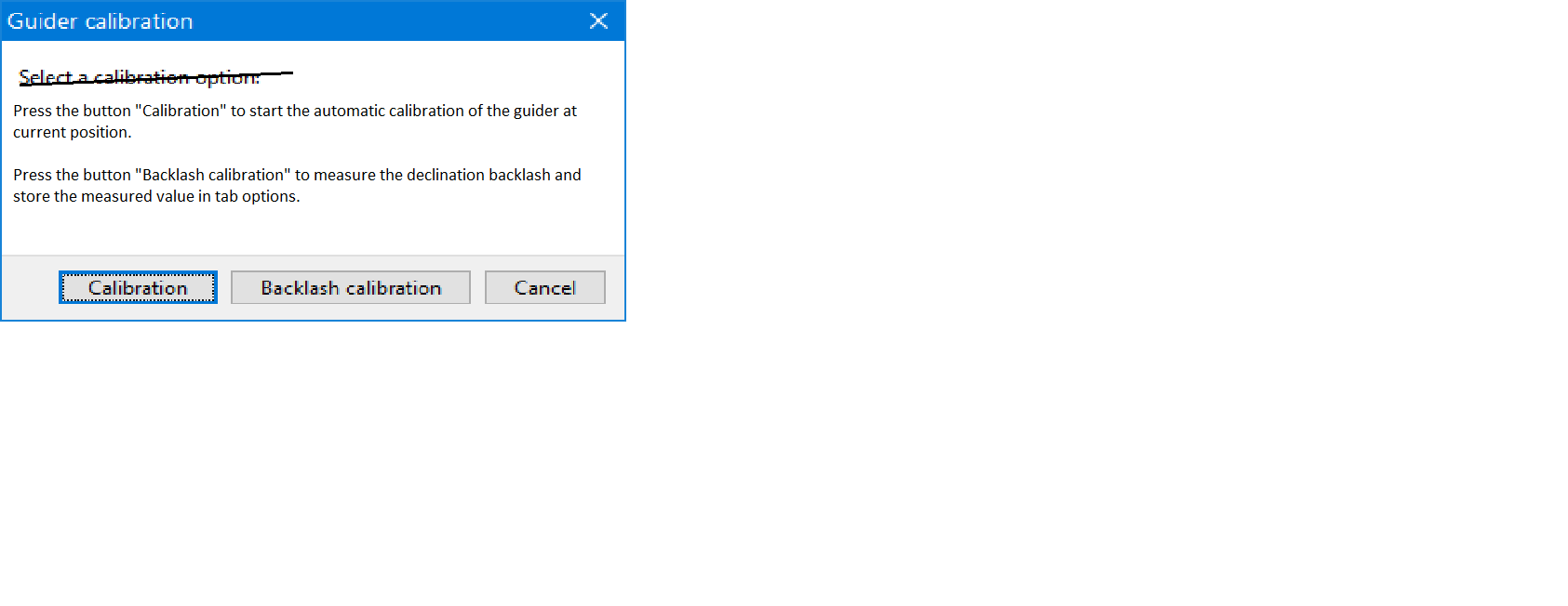 | Summary | 0002850: The text of the "Guider calibration" is unclear. | ||||